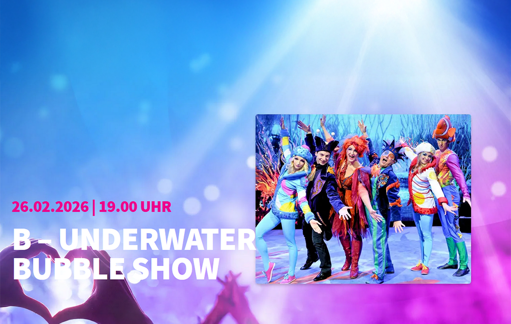 Nach dem riesigen Erfolg 2025: Noch mehr Glitzer, Seifenblasen und Staunen Die Underwater Bubble Show geht 2026 wieder auf große Deutschlandtour! HandlungNach einem stressigen Tag voller Anrufe, Meetings und Jobproblemen entdeckt Herr B in seinem Koffer plötzlich ein Fischglas – wie durch Magie. Fasziniert starrt er hinein, als wäre es eine Kristallkugel eines Zauberers und…Continue reading→
