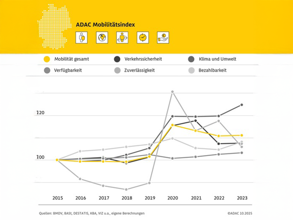 ADAC Mobilitätsindex 2025: Bundesweit wird der Verkehrssektor kaum nachhaltiger