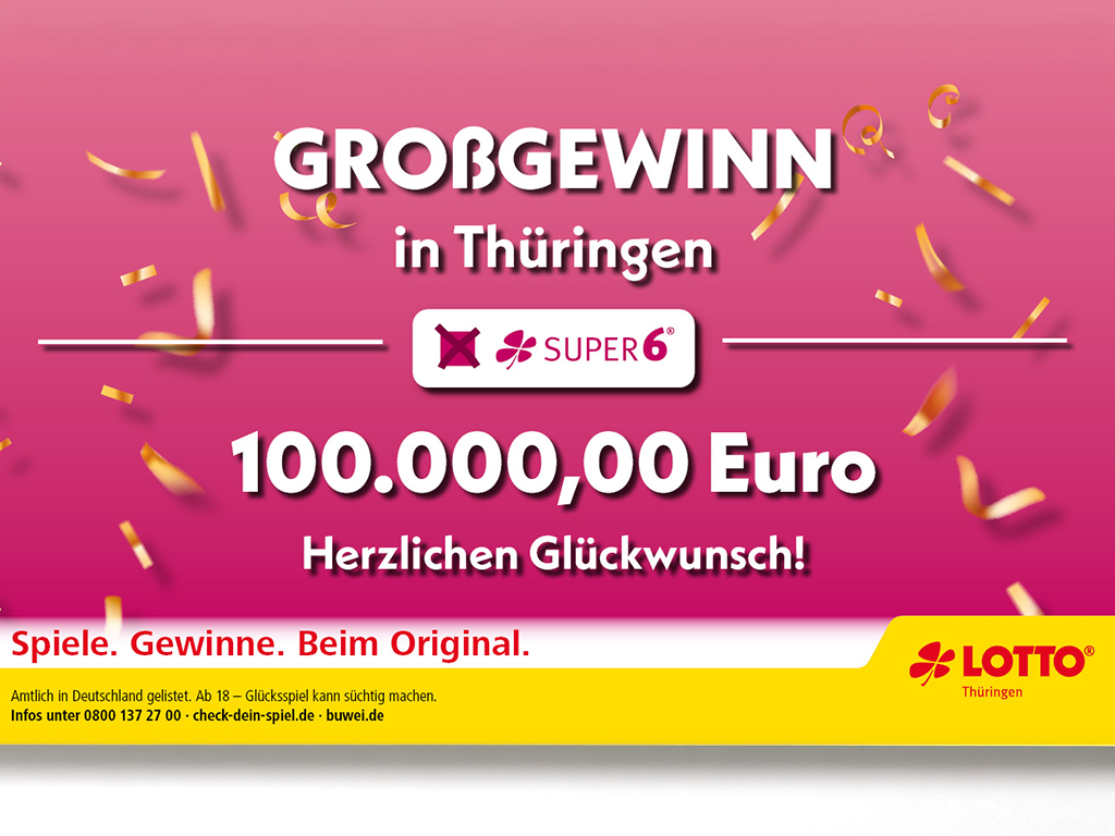 Thüringer Spielteilnehmer gewinnt 100.000 Euro bei SUPER 6 Das neue Jahr beginnt für eine Spielteilnehmerin oder einen Spielteilnehmer aus Thüringen mit einem freudigen Glücksmoment. Mit …